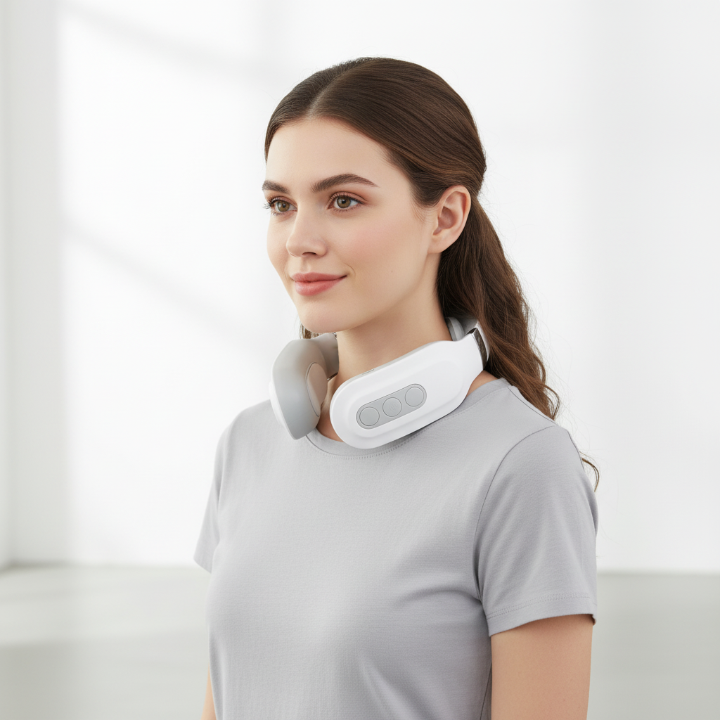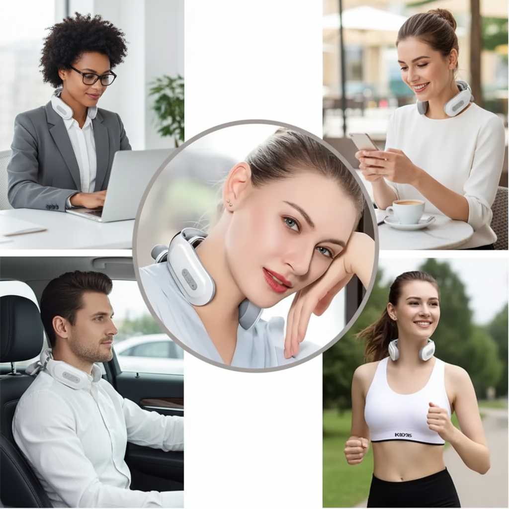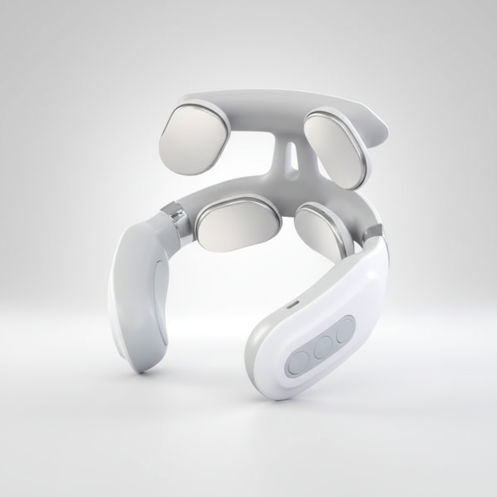Neckea to inteligenty, bioniczny masażer, który rozluźnia napięte mięśnie, łagodzi stres i zapewnia głęboki relaks zawsze wtedy, gdy go potrzebujesz.